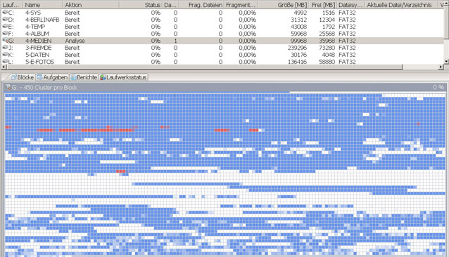 Defragmentierungsprogramme zeigen die Situation in