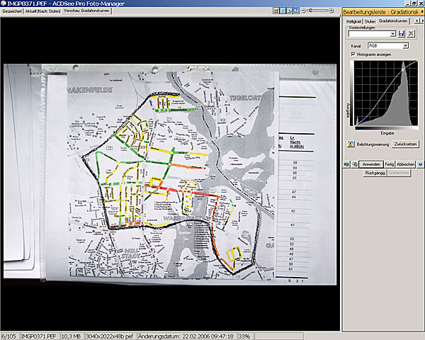 Die Gradationskurve erlaubt eine Manipulation, in diesem Falle eine Anhebung des Kontrastes.