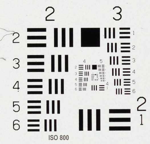 Schauen wir uns an, wie die Unschärfe zwischen 1/20 und 1/100 Sekunde typischerweise auftritt.Wieder dient die USAF 1951 - Resolution Testchart auf einem Kleinbild-Diapositiv als Testmotiv.
