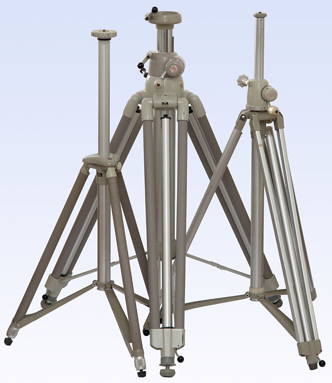 Alle auf Bild gezeigten Stative stammen von Linhof und sind sehr gut. Das mittlere, schwere Stativ kann über 2 Meter hoch eingestellt werden. Es ist ein ganz schöner Brocken mit hoher Tragkraft. Auf dem Gebrauchtmarkt gibt es exzellente Stative von Linhof, die zu den besten jemals produzierten gehören. Einige werden seit Jahrezehnten nahezu baugleich produziert.