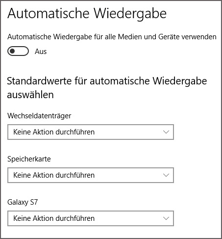Windows-Einstellungen -> Geräte -> Automatische Wiedergabe