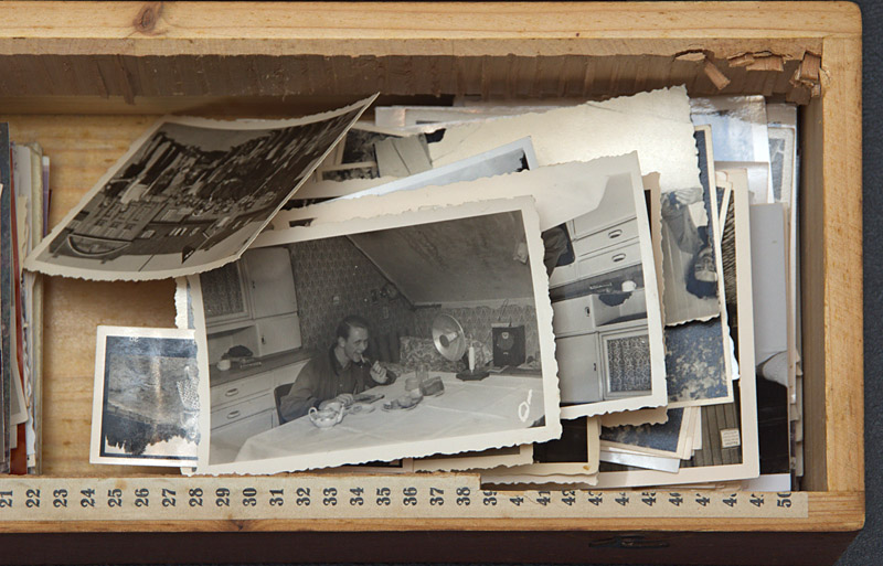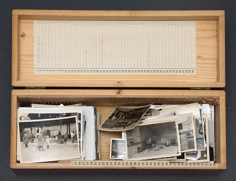 Holzkiste mit Fotos aus mehreren Jahrzehnten