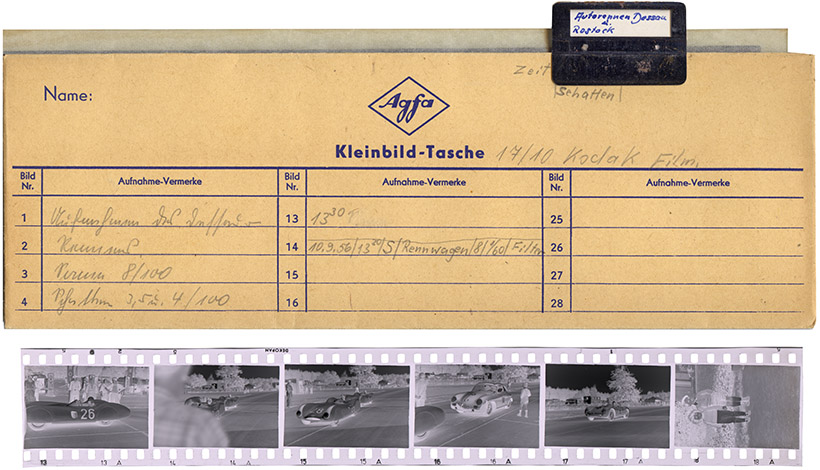 Info zum Film als handschriftliche Notiz auf einem blanken Filmstreifen. Er wird vor dem Abfotografieren eines Kleinbildfilms abgelichtet