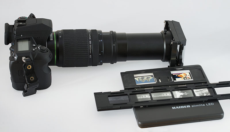 Dörr Dia-Duplikator an einem 55-300 mm Zoomobjektiv.