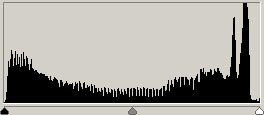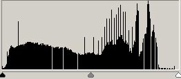 ![]() ![]() Die mittleren Tonwerte werden auseinander gezogen. Es entstehen Lücken im Tonwertverlauf. |