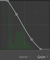 Die Nutzung der Gradationskurve zur Umkehr und Korrektur der Tonwerte kann grundsätzlich in jedem Bildbearbeitungsprogramm gleichermaßen vorgenommen werden, das eine Gradationskurve an Bord hat.Allerdings unterscheiden sie sich in Größe und auch in der Bedienbarkeit. In Lightroom finde ich sie fummelig und zickig, während sie in Photoshop und ACDSee Ultimate Photo Studio sehr gut zu handhaben ist. Auf jeden Fall muss für diese Arbeit im Fenster der geöffneten Gradationskurve auch das Histogramm sichtbar sein, um den Anfang und das Ende der jeweiligen Tonwertkurven für die drei Farbkanäle zu erkennen.