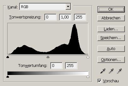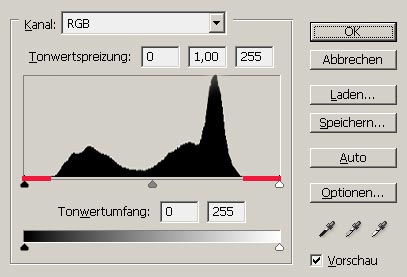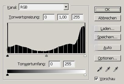 In diesem Fall wurde die Tonwertkurve gestaucht. Dabei verzichtet man auf die sehr dunklen und sehr hellen Tonwerte.