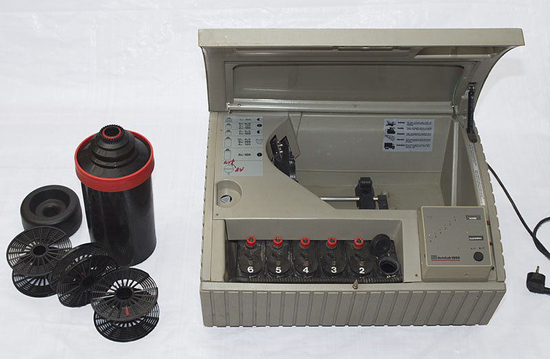 Jobo ATL 1000. Zur Reinigung kann man eine Abdeckung aus dünnem Plastik abschrauben.