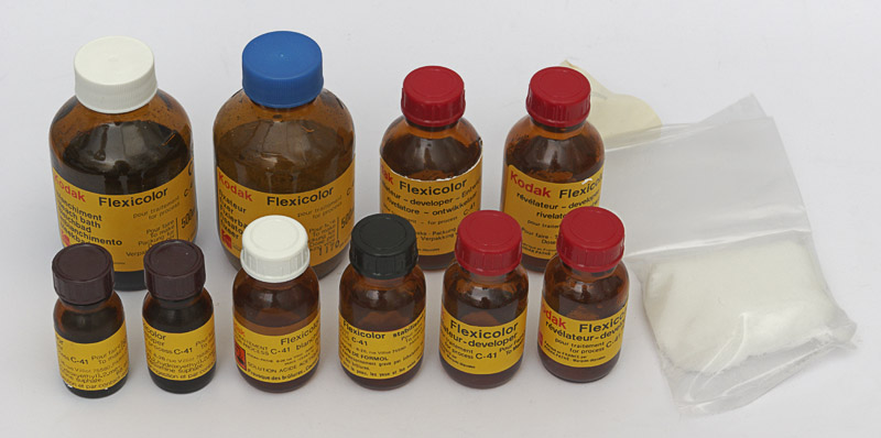 Für die Entwicklung von Farbnegativen bietet Kodak den Chemiesatz Flexicolor C-41 an. Für das heimische Fotolabor gab es einen Satz für jeweils 500ml Flüssigkeit der einzelnen Bäder. Heute ist Kodak Flexicolor nur in größeren Konfektionen zu erhalten, die für das geringe Aufkommen im privaten Fotolabor nicht geeignet sind.