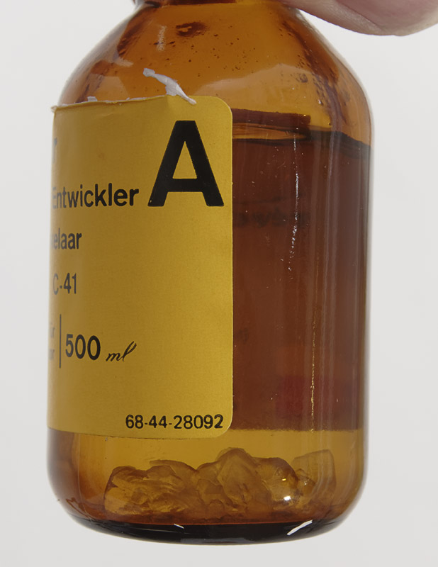 Im Konzentrat A des Entwicklers haben sich Kristalle gebildet.