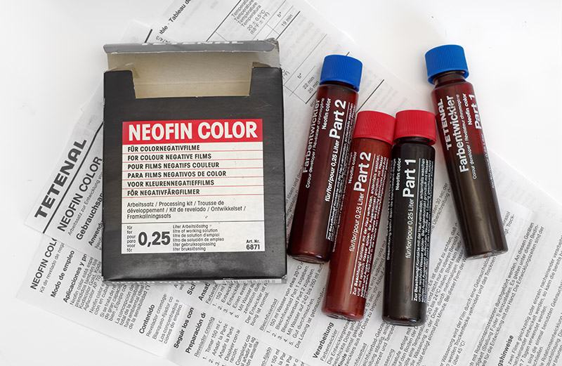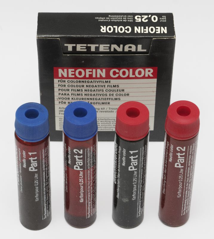 Neofin color ist Fotochemie zur Entwicklung von Farbnegativen in kleinen Entwicklungsdosen mit einem Fassungsvermögen von 240 bis 260 ml. Die Verarbeitungstemperatur liegt zwischen 20° - 24° C.
