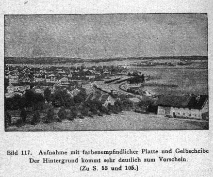 als mit farbenempfindlicher Platte ohne Gelbfilter meist