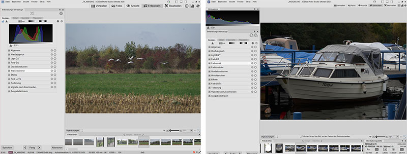 ACDSee Photo Studio Ultimate. Links: Version 2020, rechts Version 2021 (wie Version 2022)