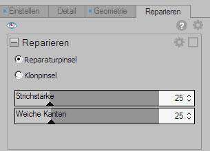 Dem Register Reparieren wurde ein Reparaturpinsel hinzugefügt.