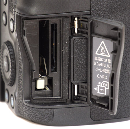 Zwei Plätze für Speicherkarten. Eine für CFexpress und die andere für eine SD-Speicherkarte