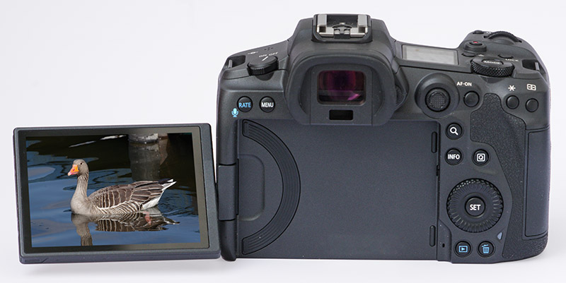 Es gibt verschiedene Typen von beweglichen Displays. Persönlich finde ich am besten, wenn es nach unten und nach oben geklappt werden kann, wie an der Canon EOS M6 II. Für Makroaufnahmen in Bodennähe oder Fotografie an der Reprosäule ist das ideal.Bei der Canon R5 wird es erst zur Seite geklappt, um nach oben und unten gedreht werden zu können. Was man mehr mag, ist wohl eine subjektive Geschmacksfrage. Allerdings hat diese Anbringung den Vorteil, die Oberfläche des Displays in der Fototasche besser zu schützen, indem es nach innen gedreht wird und somit seine rückseitige Kunstoffabdeckung zur Außenseite wird. Braucht man das? Mir ist noch nie ein Display sichtbar verkratzt oder gebrochen. Früher klebte ich Schutzfolie auf die Displays meiner Pentax DSLRs, verzichtete aber bei meinen letzten Modellen darauf, die trotz häufigen Gebrauchs bislang alles ohne sichtbare Gebrauchsspuren wegsteckten. Die Displays von Canon werden sicherlich ebenso robust sein, sodaß viele Fotografen ihre Glasoberfläche auch beim Verstauen außen lassen.