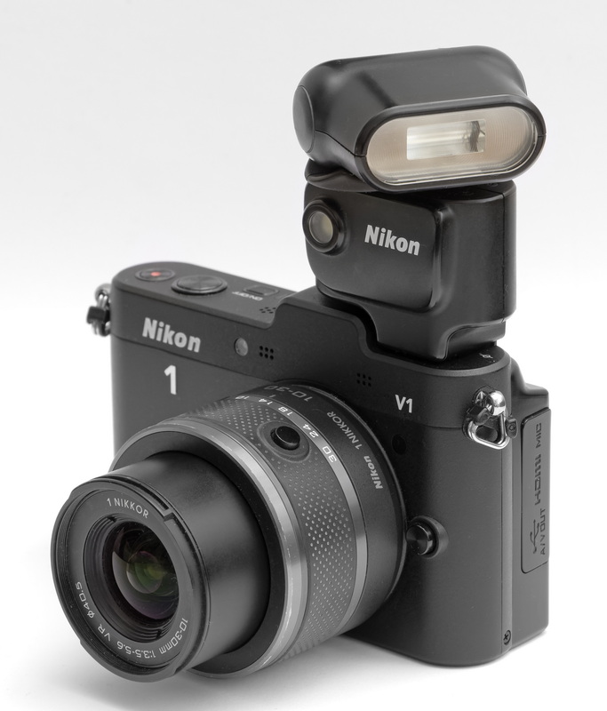 Nikon V1 mit dem ersten 10-30mm Zoomobjektiv und Sppedlight SB-N5