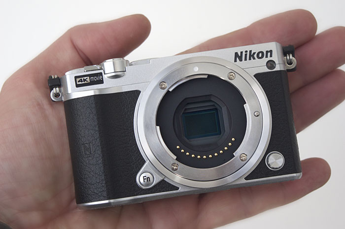 Die Nikon 1 J5 ist ein Winzling, kaum größer als eine Spielkarte. Das Gehäuse gibt es mit Chromteilen oder ganz schwarz.