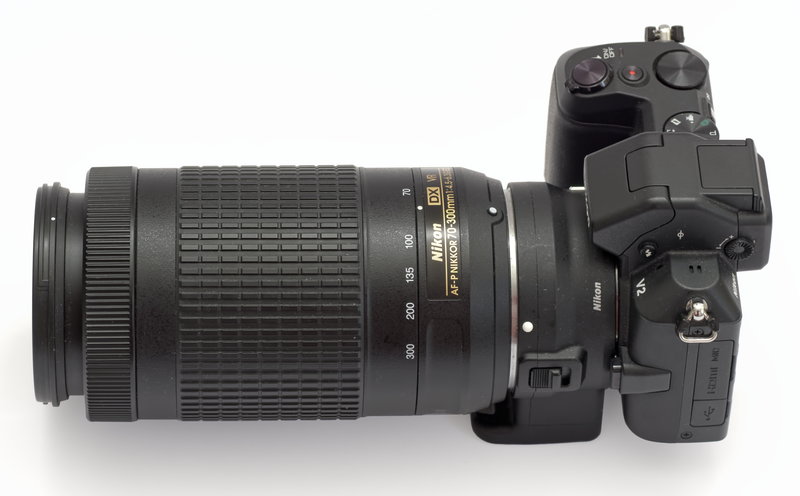 AF-P Nikkor 70-300mm DX VR Zoomobjektiv mit Adapter FP1 an der Nikon V2. Kleinbildäquivalent entspricht die Brennweite 190 - 810 mm. Kompakter und günstiger ist diese enorme Teleleistung bei guter Bildqualität nicht zu bekommen. Der Autofokus benötigt genügend Licht, um scharfzustellen, was dann auch flott geschieht. In der Dämmerung versagt er allerdings. Daher ist diese Kombination nur tageslichttauglich, aber für viele Einsatzzwecke sehr gut geeignet.