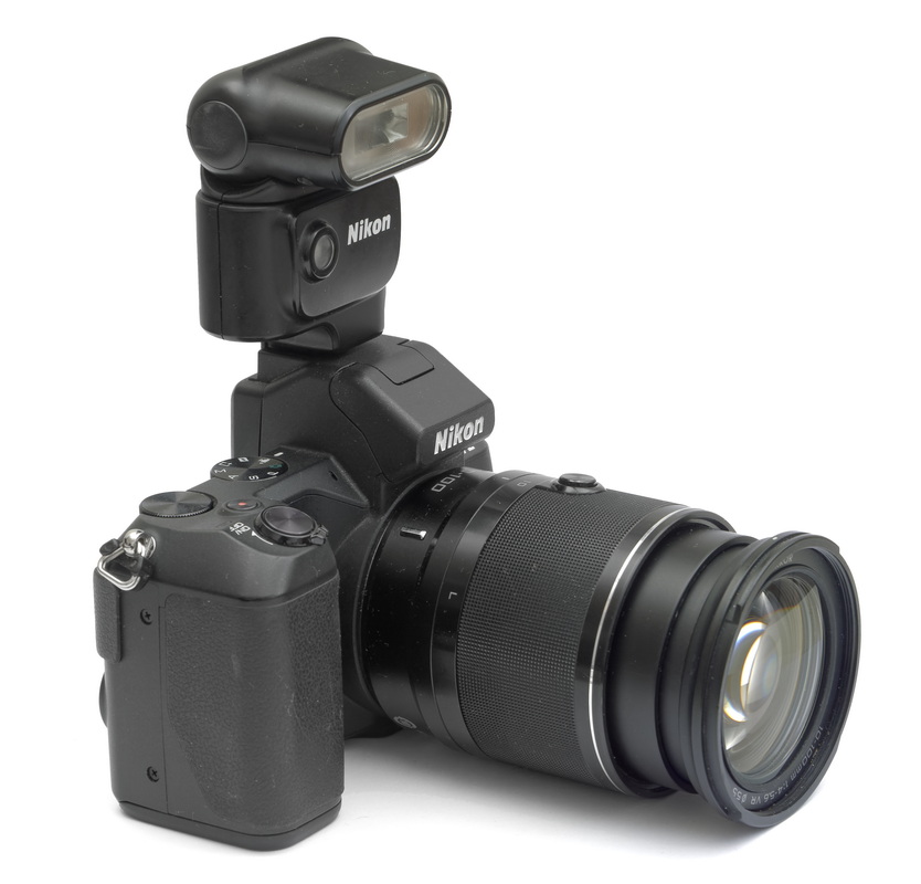 Nikon V2 mit Speedlight SB-N5 Blitzgerät und 1 Nikkor VR 10-100mm