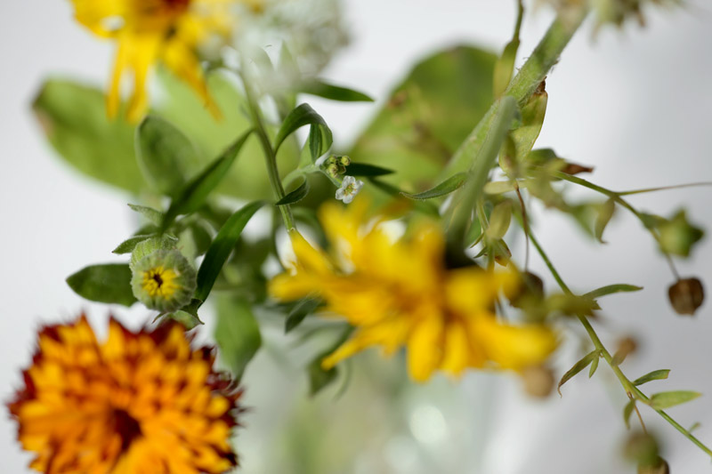 Nahaufnahme von Blumen in einer Vase. Einzelfoto mit geringer Tiefenschärfe.
