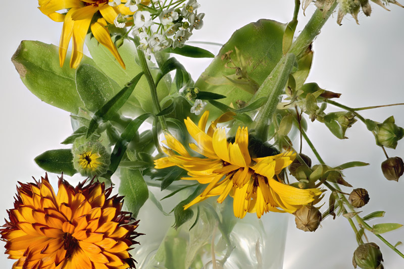 Das Ergebnis des Focus Stackings der mp4 Datei mit Helicon Focus zeigt die Blumen in der Vase von vorne bis hinten alles scharf.