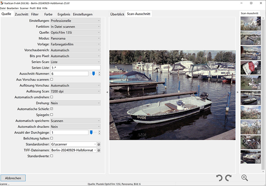 Wichtg: Während des Serienscans sollte man nichts anderes am Computer machen, weil der Scanvorgang sonst stoppen kann und man von vorne anfangen muss.