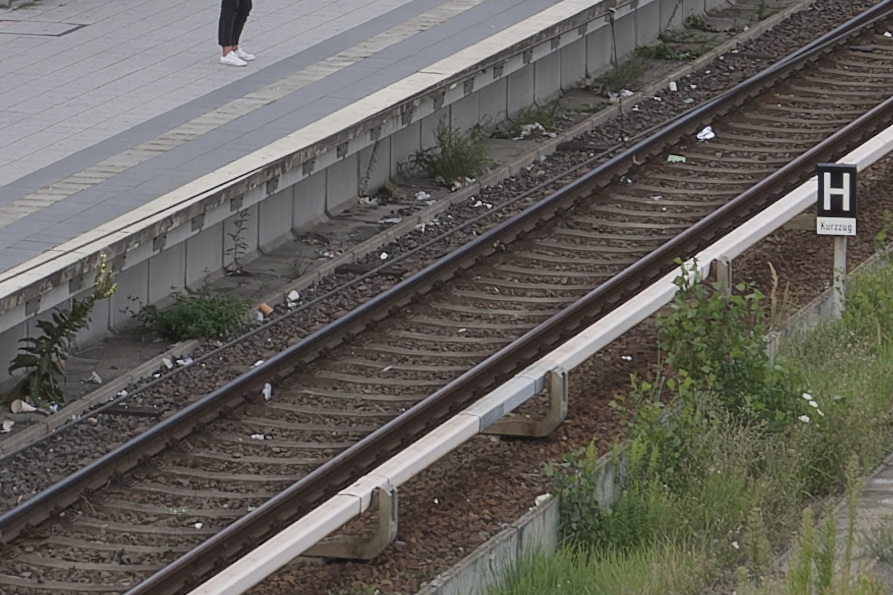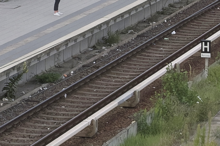Bei ISO 25600 ist das Wort 'Kurzug' nicht lesbar. Die Fugen zwischen den Bodenplatten auf dem Bahnsteig sind zum Teil niccht mehr zu sehen.