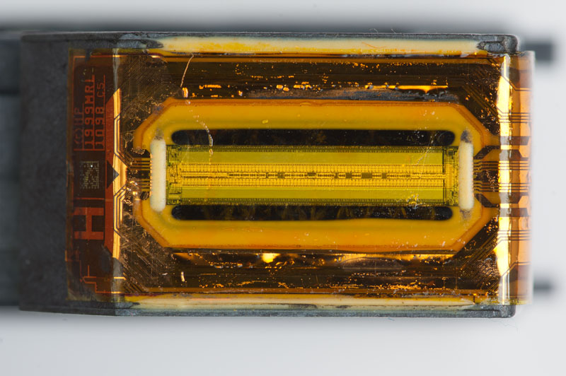 Die Bildqualität leidet etwas, weil es so skaliert wurde, dass der Ausschnitt mit der gleichen Stelle aus dem Nikon Scanner deckungsgleich ist. Es wurde eine Unscharf Maskierung von Stärke 100 / Radius 1,2 / Schwellenwert 0 angewandt, um eine ähnliche Mikroauflösung zu erzeugen wie vom Nikon Scanner.
