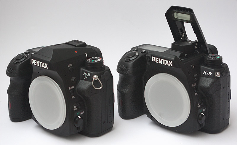 Pentax K-3 II ohne Blitz, mit integrierter GPS Einheit / Pentax K-3 mit Blitz