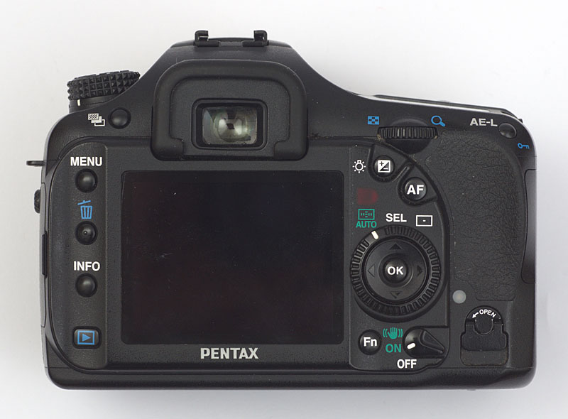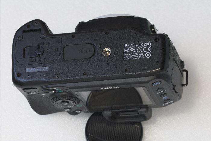 Um die Klappe vor dem Speicherkartenschacht zu öffnen, muss sie über eine Vorrichtung auf der Rückseite der Kamera entriegelt werden. Dieser aufwendige Mechanismus wurde beim Nachfolger, der Pentax K-7 aufgegeben. Die K20D hat einen Ein- und Aus-Schalter für die Anti-Shake Funktion. Der ist sehr praktisch, weil man dafür nicht im Menue suchen und klicken muss.