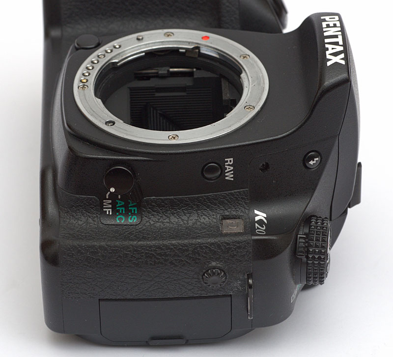 Pentax K20D - Vorderseite mit Blick in den Spiegelschacht