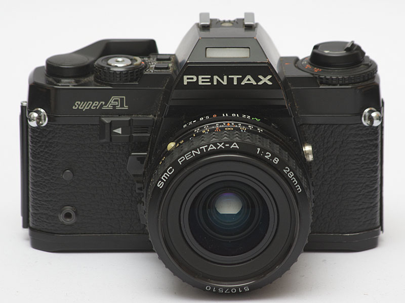 Pentax super A mit SMC Pentax-A 1:2.8 28mm Weitwinkelobjektiv