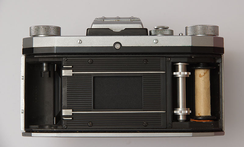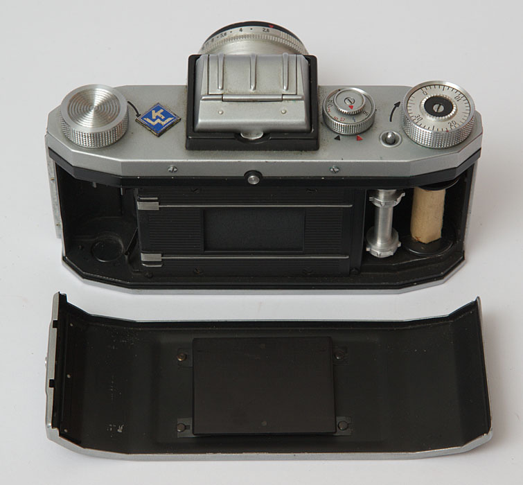 Der rückseitige Deckel wird zum Entnehmen oder Einlegen des Films abgenommen.
