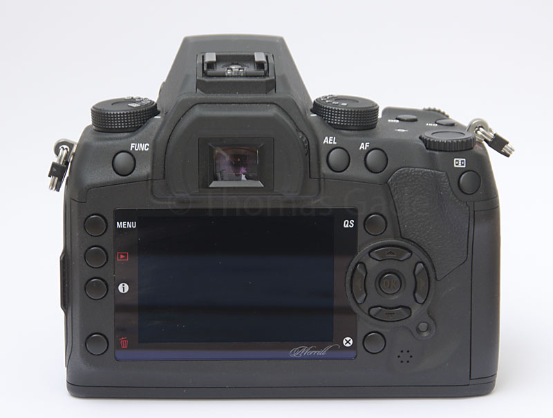 Die Rückseite der Sigma SD1 entspricht dem Aussehen vieler anderer digitaler Spiegelreflexkameras. Es gibt einen 3" LCD Monitor, einen Dioptrienausgleich am Sucher und verschiedene Tasten für diverse Funktionen. Hat man sich damit vertraut gemacht, ist die Bedienung dieser Kamera einfach. Leider gibt es keinen LiveView und somit auch keine digitalen Lupe zum manuellen Scharfstellen.