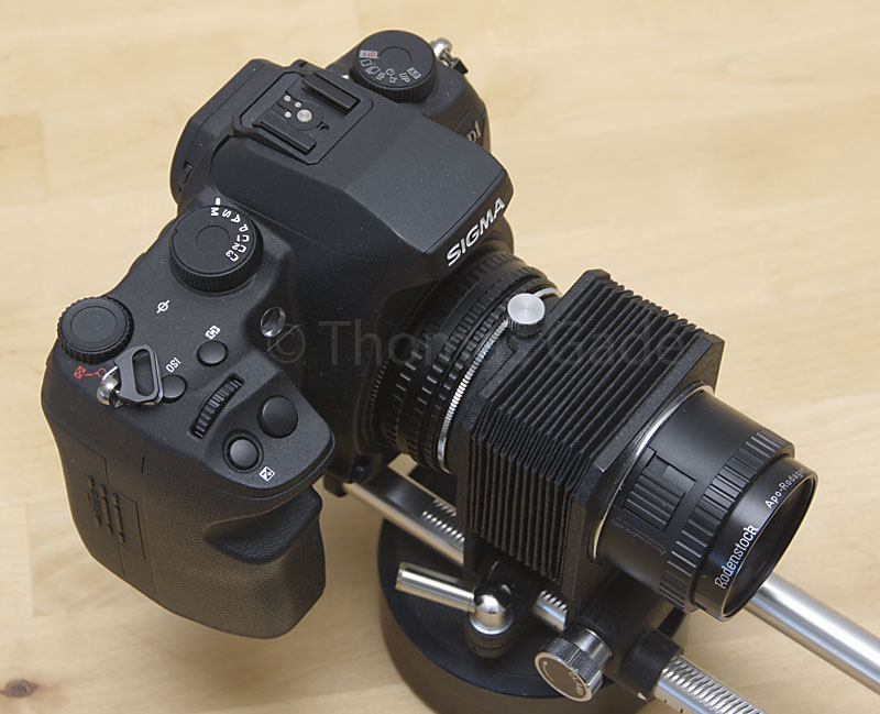 Die besondere Qualität des Foveon Sensors wäre am Mikroskop, am Teleskop oder am Balgengerät vorteilhaft. Jedoch kann man mangels LiveView nicht auf den Punkt genau scharfstellen. Der optische Sucher der Kamera ist gut, doch eine wirklich präzise Scharfstellung gelingt mit solchen Optiken nur mit Hilfe der digitalen Lupe.