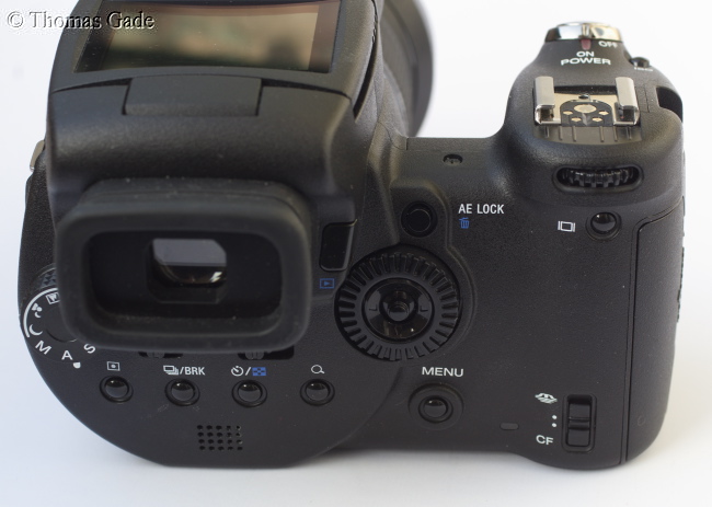 Drei Drehräder und diverse Knöpfe sind für Einstellungen vorhanden. Bei Kompaktkameras werden viele Einstellungen nicht genutzt, weil sie in schwer verständlichen, unübersichtlichen Menues vorgenommen werden und der Fotograf in der Praxis gar nicht weiß, wo was verändert wird. Dagegen ist die Sony DSC-R1 so übersichtlich und leicht bedienbar wie eine gute DSLR.
