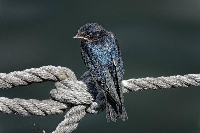 Rauchschwalbe auf einem Tau. Einstellungen: F 4, ISO 100, 1/500 s, 208 mm (567 mm für KB)