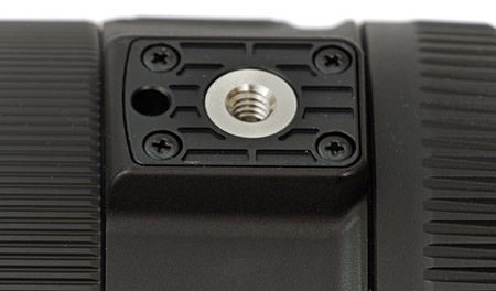Das Teleobjektiv hat einen Stativanschluss, aber keine Stativschelle, in der es rotiert werden kann, um vom Hoch- vom Querformat zu wechseln.