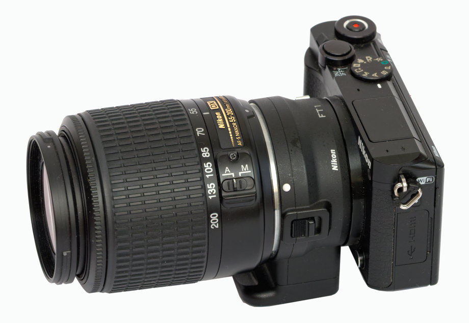 Dieses Objektiv bietet an den Kameras vom Nikon 1 System eine viel weitere Teleleistung als das 1 NIKKOR 10-100mm oder 1 NIKKOR 30-110mm Zoomobjektiv. Auf dem Gebrauchtmark sind gut erhaltene Exemplare für rund 60 € erhältlich. Das ist günstig!In Kombination mit dem FT1 Adapter für das System-1 ist das Nikkor AF-S 55-200mm DX ED deshalb eine preiswerte Möglichkeit, um den Telebereich der Nikon 1 Kameras zu erweitern.