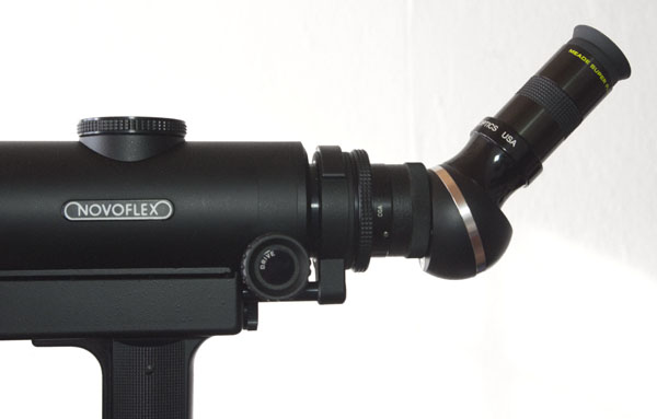 Mit einem Amiciprisma und einer 2x Barlow wird aus dem Novoflex ein Spektiv.