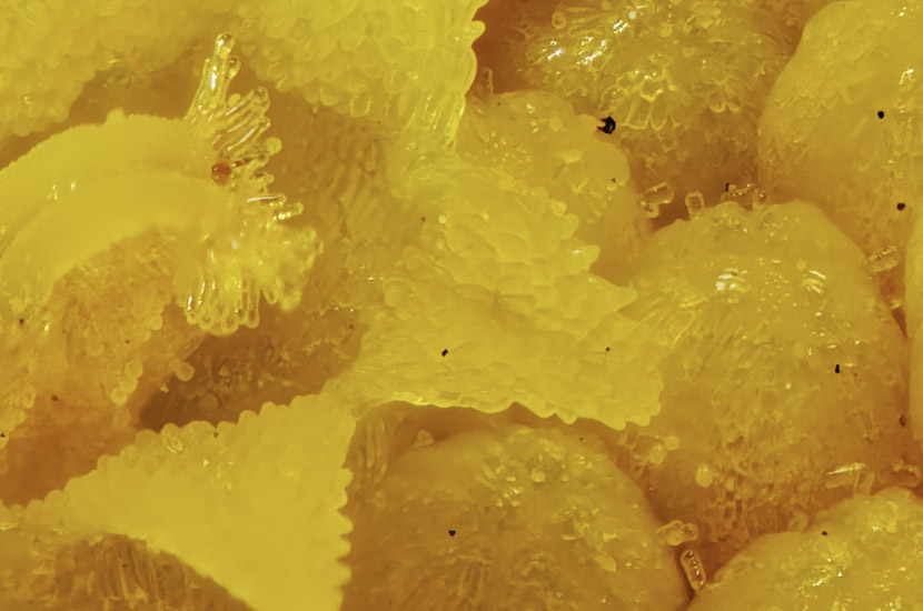 M.Zuiko Digital ED 90mm F3.5 Macro IS PRO an einer Olympus OM-D E-M1 III beim Fotografieren einer kleinen gelben Blüte. Sie wurde mit Focus Bracketing mit 70 Schritten auf Stufe 1 aufgenommen. Die Bilderserie wurde mit DxO PhotoLab 6 konvertiert und mit Helicon Focus gestackt. Durch das Focus Stacking entsteht ein Foto mit großer Schärfentiefe.