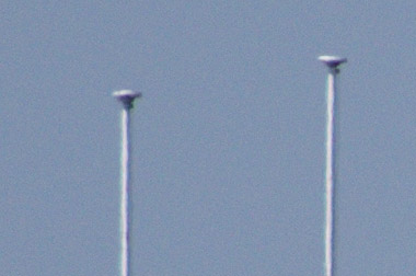 Der Test wurde an einem warmen Tag durchgeführt. Leider flimmerte die Luft heftig und das volle Potenzial der Optik konnte so nicht festgestellt werden. Vergleichsweise wurde wenige Minuten später das gleiche Motiv mit einem Novoflex - Noflexar 600mm Teleobjektiv aufgenommen. Bei offener Blende (8) löste es etwas besser auf als das 500mm Pentacon.