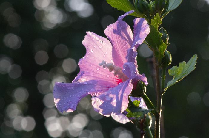Hibiskusblüte. Aufnahmedistanz ca. 1,3 Meter. Blende 10. Die Wirkung der 8 Blendenlamellen ist gut erkennbar.