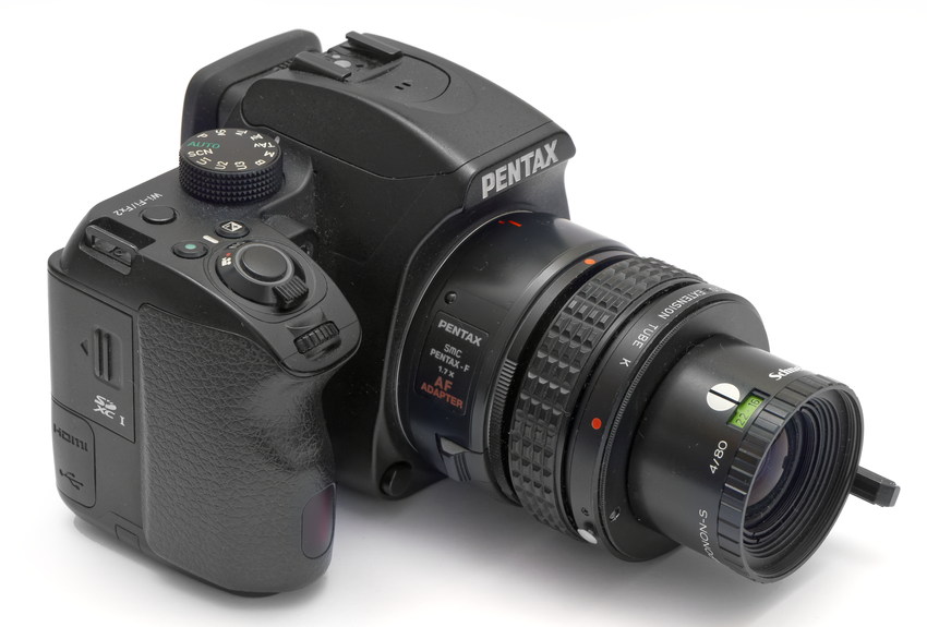Schneider-Kreuznach Componon-S 4/80 an einer Macroschnecke (Extension Tube K) mit smc Pentax-F 1.7x AF Adapter. Die Kombination funktioniert gut.