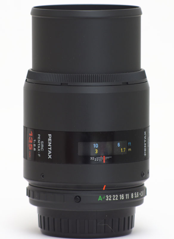 Pentax-F 2.8 / 135mm Teleobjektiv mit ausgezogener Sonnenblende