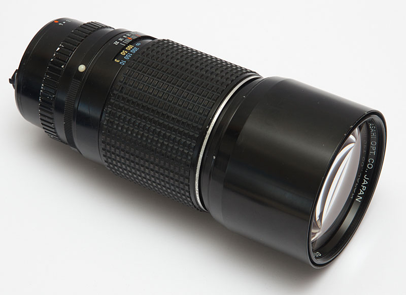 Das frühe K-Bajonett hat noch keine elektronischen Kontakte zum Übertragen der Blendenwerte. Dennoch kann dieses Teleobjektiv auch gut mit der modernen DSLR verwendet werden.