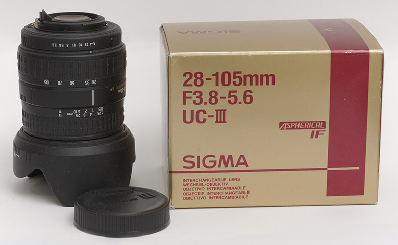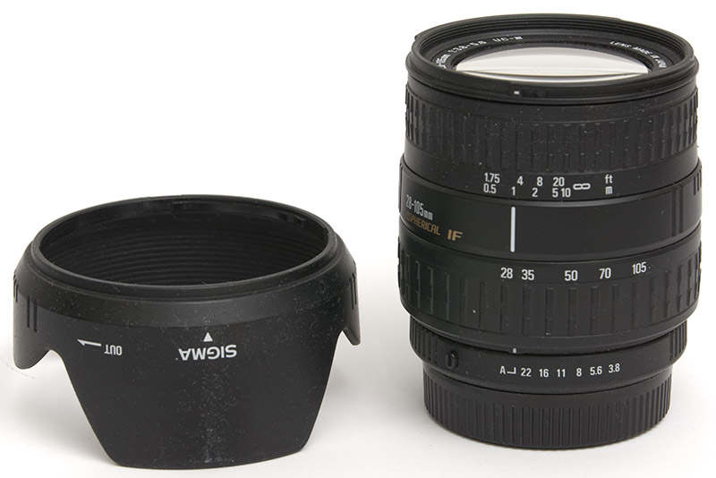 Sigma 28-105mm F3.8-5.6 Aspherical IF UC III Zoomobjektiv mit Sonnenblende