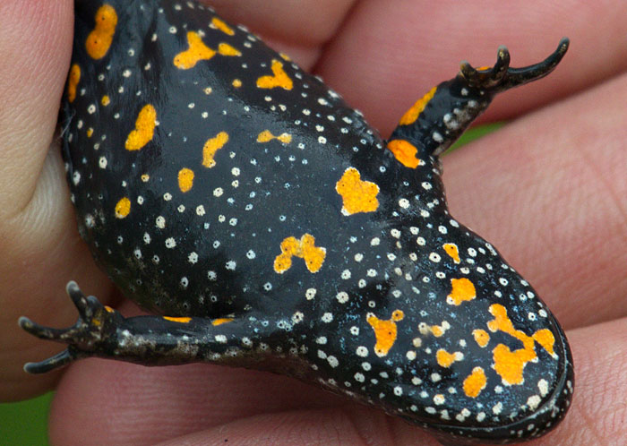 Rotbauchunke in der Hand. Näher konnte ich mit dem 400mm Teleobjektiv nicht ran. Blende 8 mit 1/400 Sekunde.