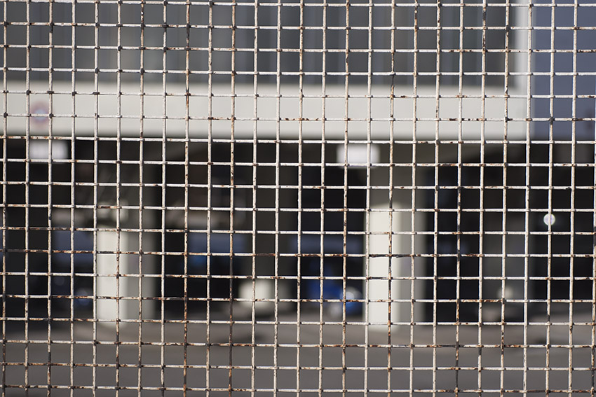 Ausschnitt aus der Mitte Zaun aus Maschengitter. Fotografiert mit Blende 2,8
